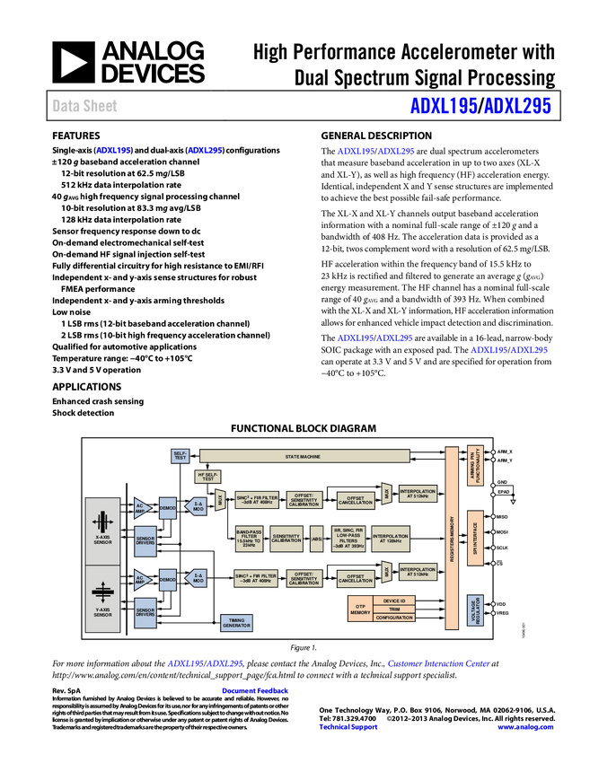 ADXL195 Dual-axis, High Performance Accelerometer with Dual Spectrum Signal Process...