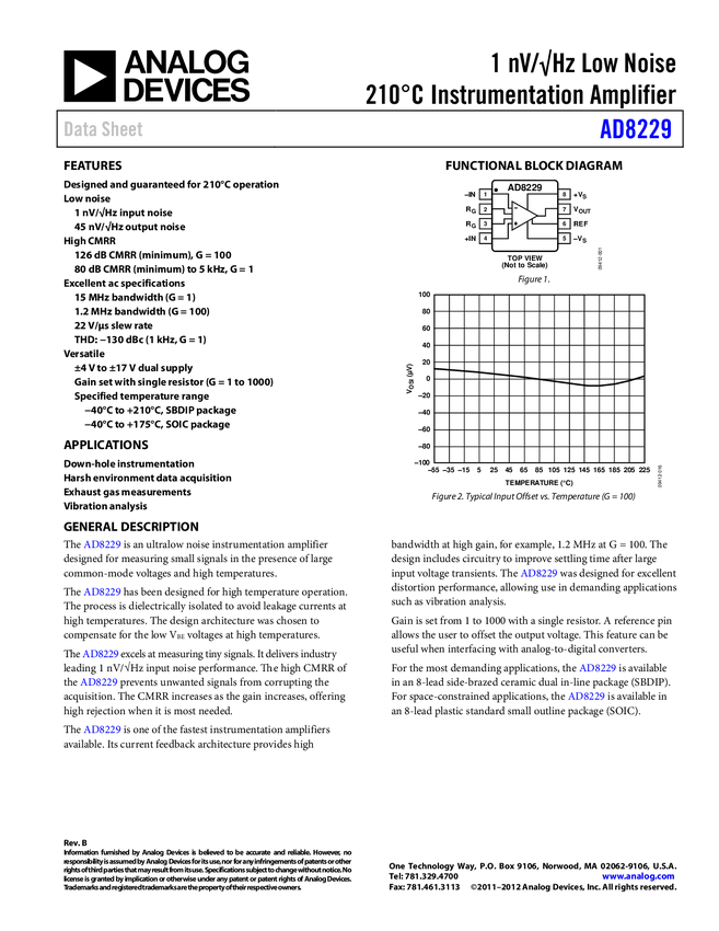AD8229 1 nV/√Hz Low Noise 210°C Instrumentation Amplifier