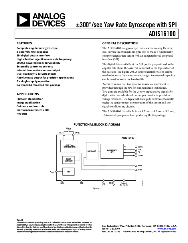 ADIS16100 ±300°/sec Yaw Rate Gyro with SPI Interface