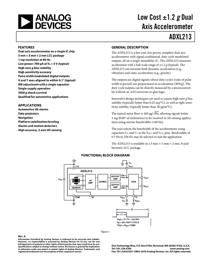 ADXL213 Low Cost ±1.2 Dual Axis Accelerometer