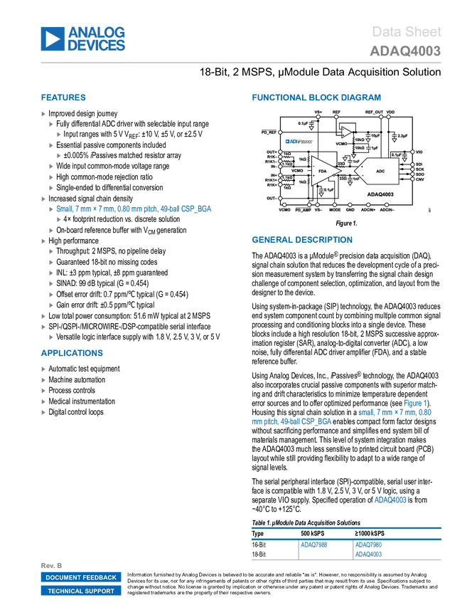 ADAQ4003 18-Bit, 2 MSPS, μModule Data Acquisition Solution