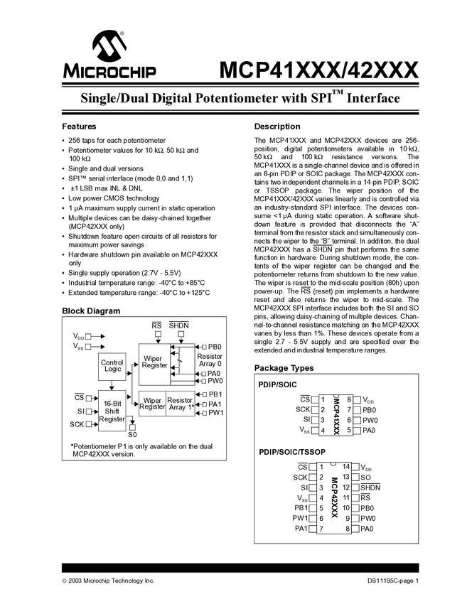 MCP41XXX/42XXX Datasheet