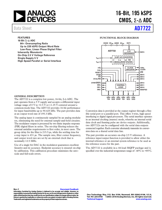 AD7722 16-Bit, 195 kSPS CMOS, Sigma-Delta ADC