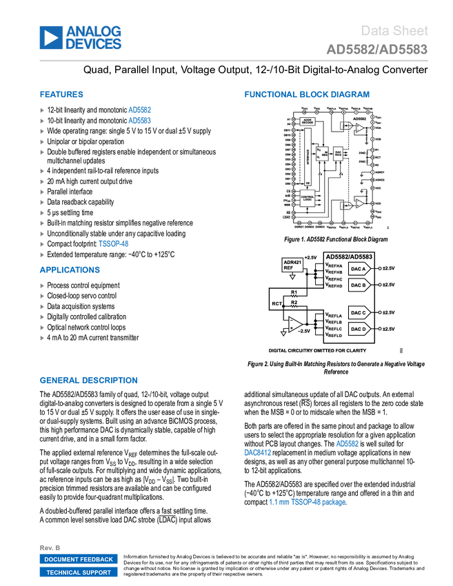 AD5583 Quad, Parallel Input, Voltage Output, 10-Bit Digital-to-Analog Converter