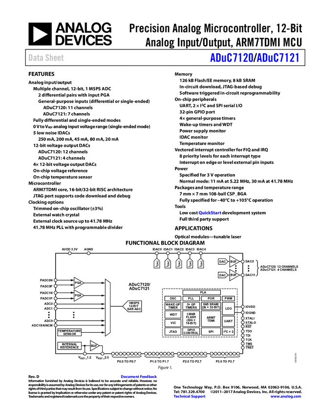 ADUC7120 Precision Analog Microcontroller, 12-Bit Analog Input/Output, ARM7TDMI MCU