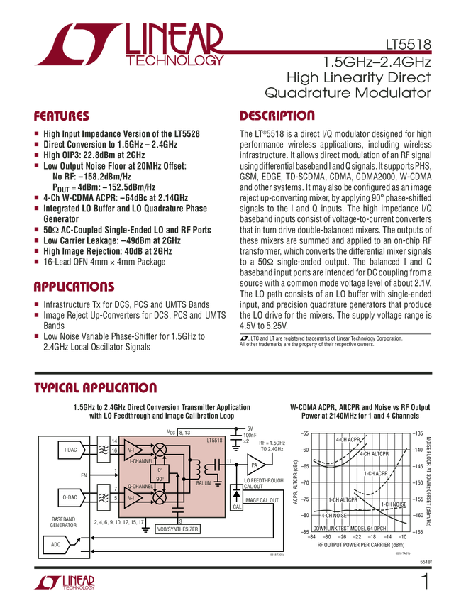 LT5518 1.5GHz - 2.4GHz High Linearity Direct Quadrature Modulator