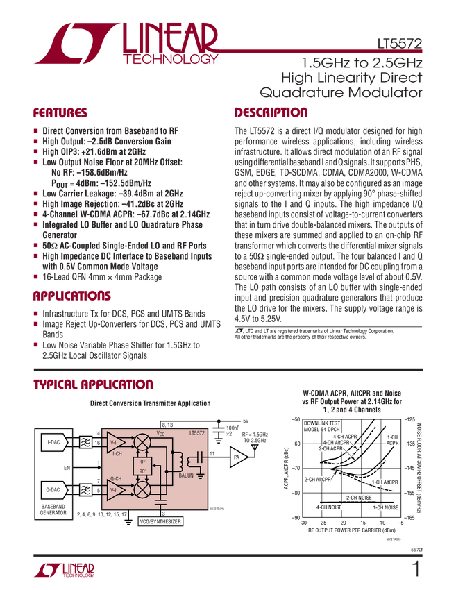 LT5572 1.5GHz to 2.5GHz High Linearity Direct Quadrature Modulator