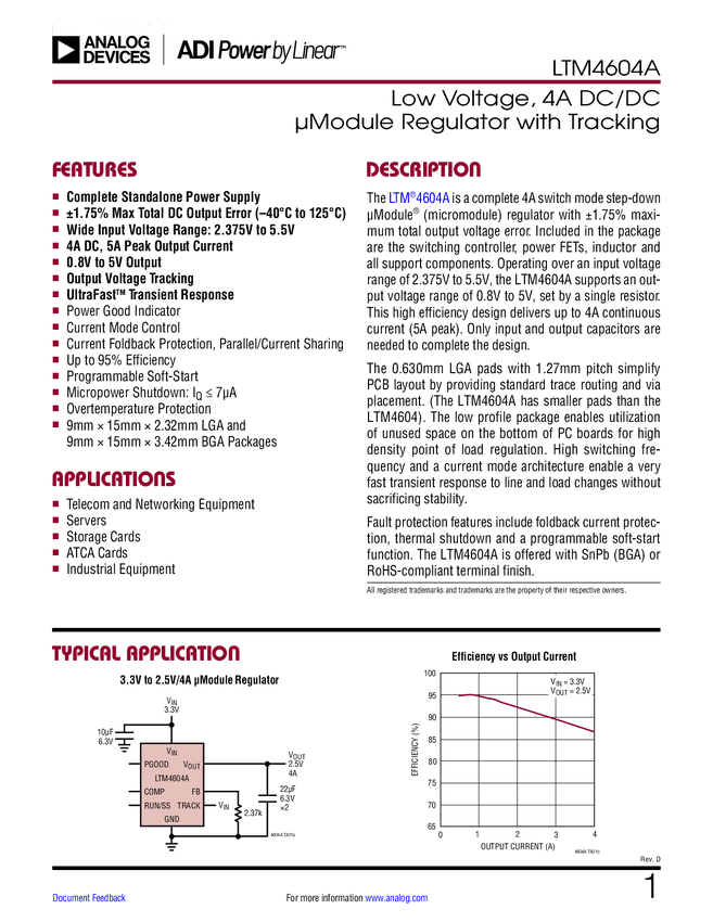 LTM4604A Low Voltage, 4A DC/DC μModule (Power Module) Regulator with Tracking