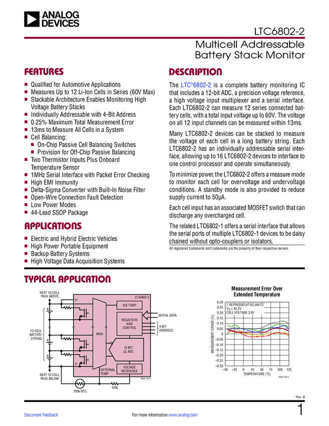 LTC6802-2 12 Channel Multicell Battery Monitor with Addressable Interface, Generaion...