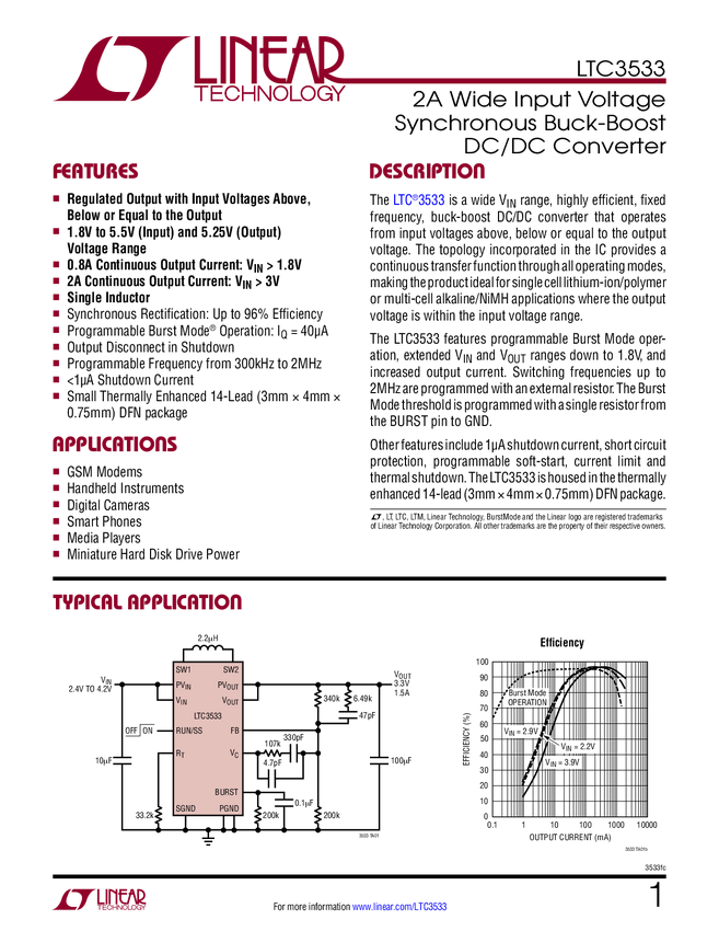 LTC3533 2A Wide Input Voltage Synchronous Buck-Boost DC/DC Converter