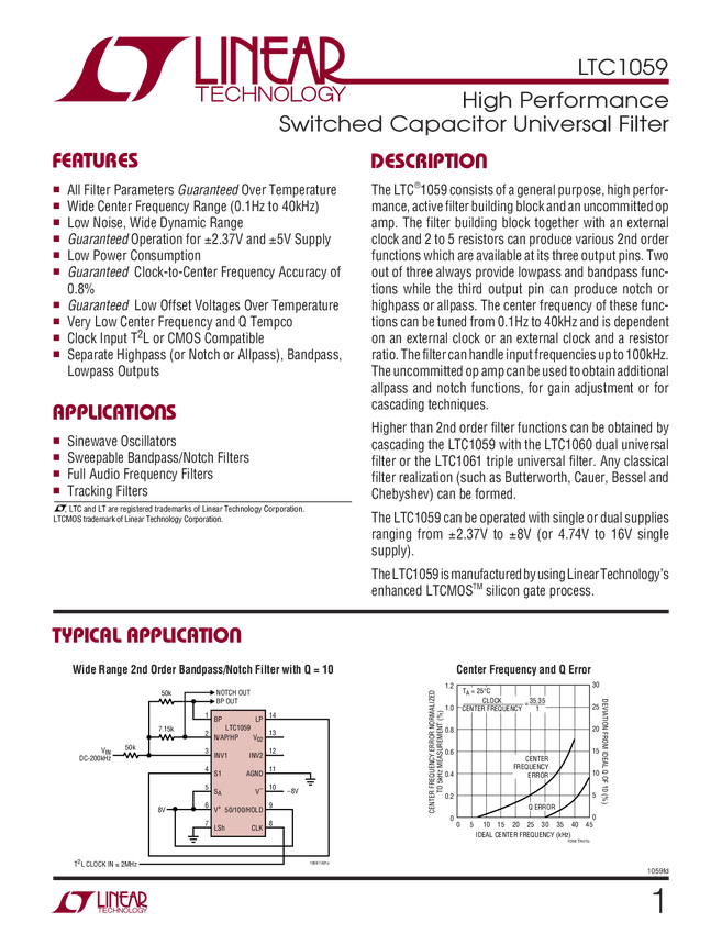 LTC1059 High Performance Switched Capacitor Universal Filter