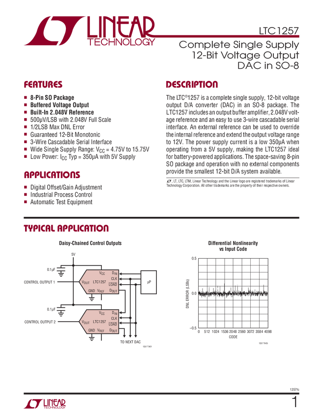 LTC1257 Complete Single Supply 12-Bit Voltage Output DAC in SO-8