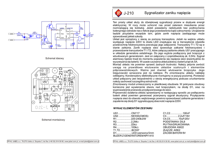 J-210 Sygnalizator zaniku napięcia - zestaw do montażu