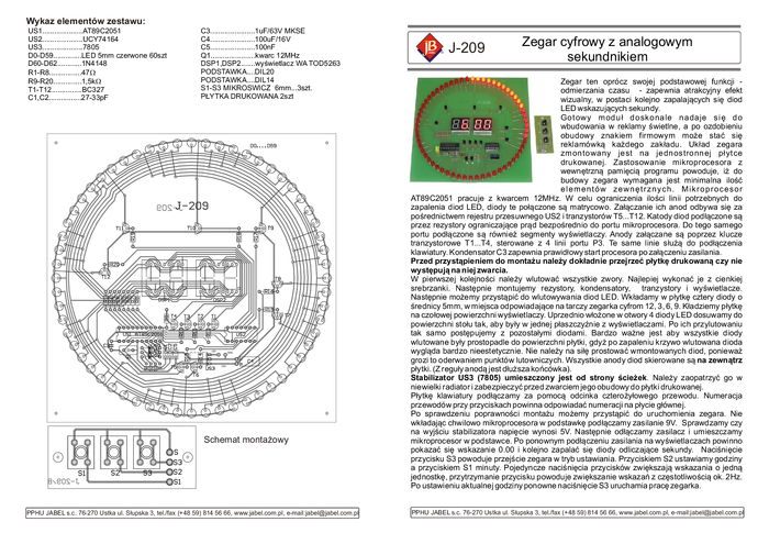 J-209 Mikroprocesorowy zegar cyfrowy z "analogowym" sekundnikiem - zestaw do mont...