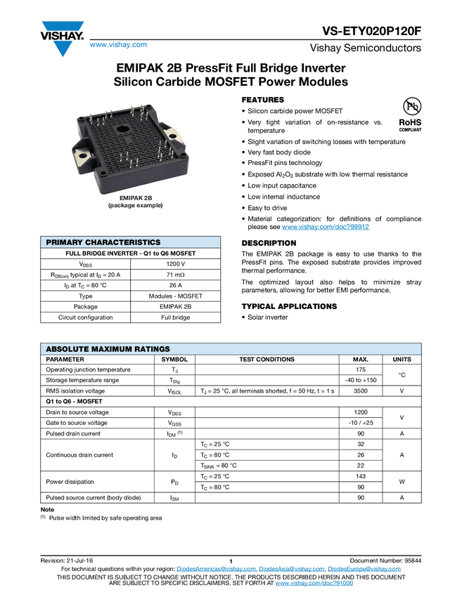 VS-ETY020P120F EMIPAK 2B PressFit Full Bridge Inverter Silicon Carbide MOSFET Power Module...