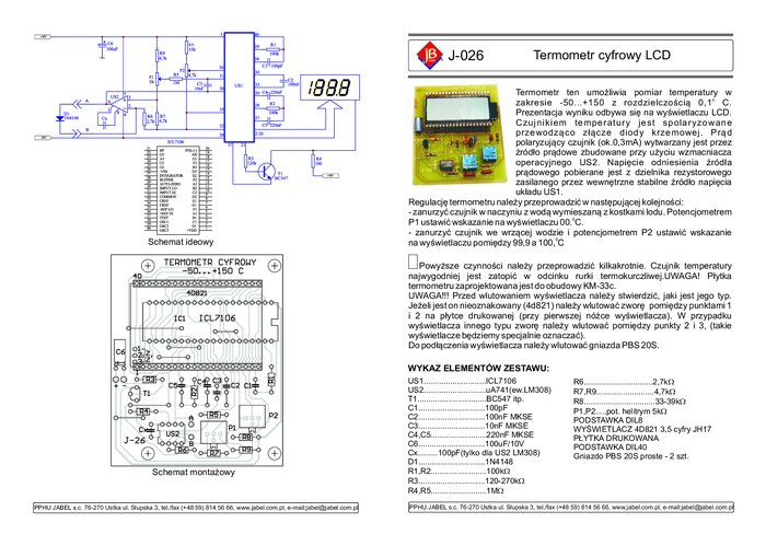 J-026 Precyzyjny termometr cyfrowy z wyświetlaczem LCD - zestaw do montażu