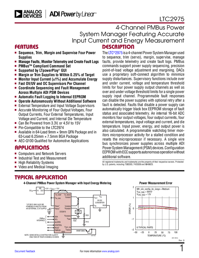 LTC2975 4-Channel PMBus Power System Manager Featuring Accurate Input Current and E...