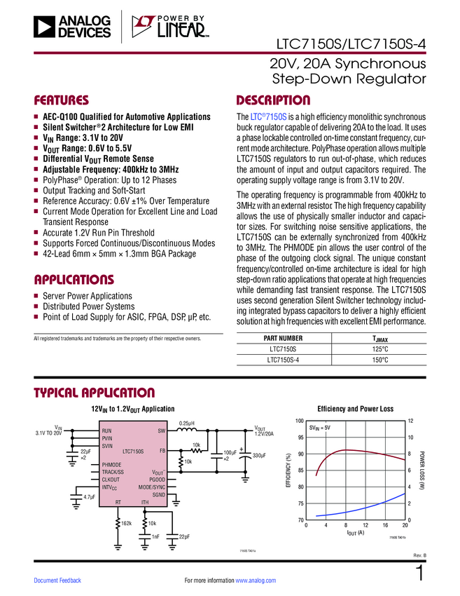 LTC7150S 20V, 20A Synchronous Step-Down Regulator