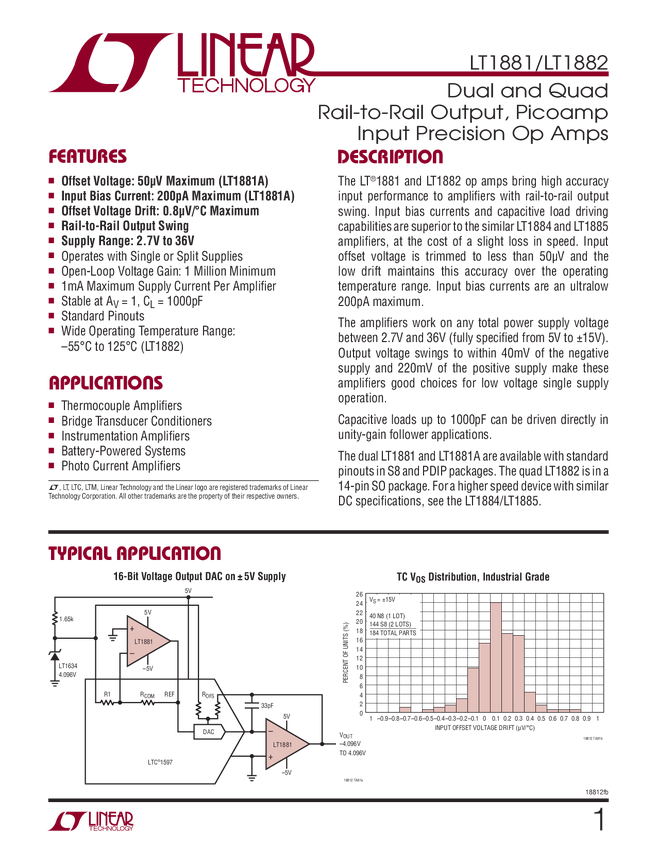 LT1881 Quad Rail-to-Rail Output, Picoamp Input Precision Op Amps