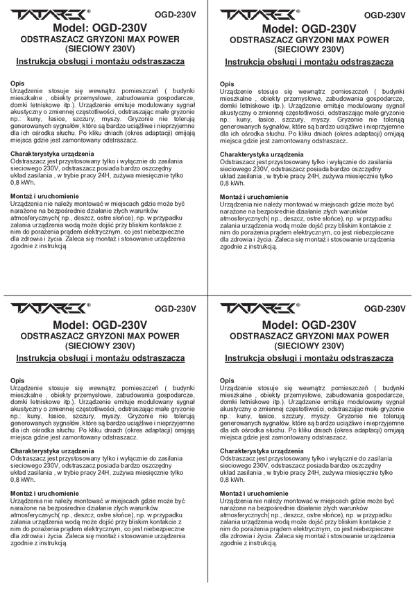 OGD-230V Dogniazdkowy odstraszacz gryzoni TATAREK | OGD-230V