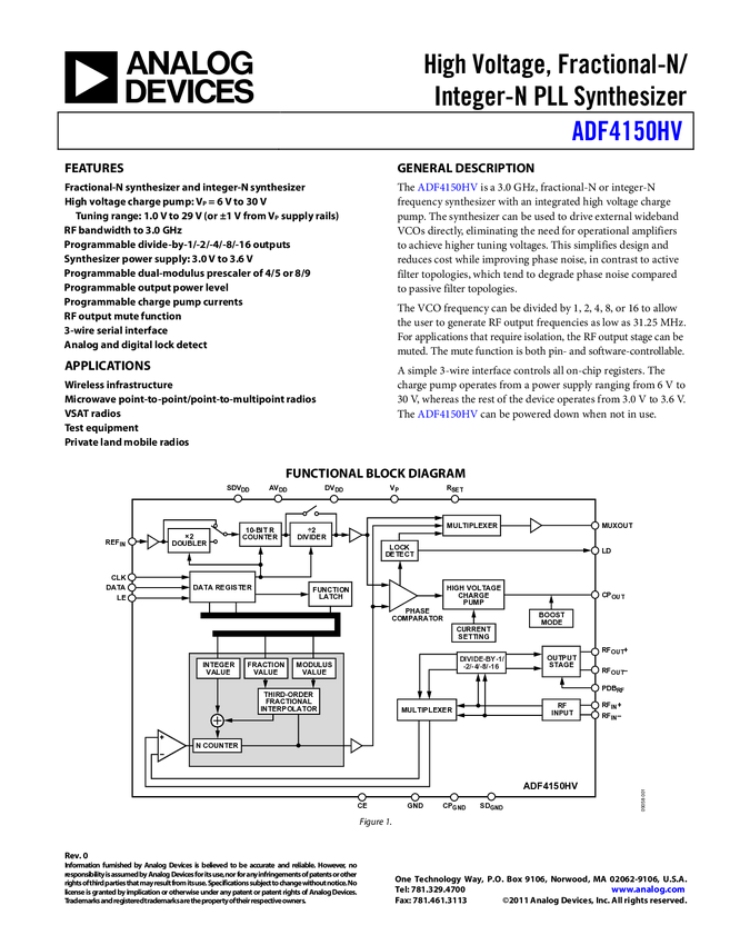 ADF4150HV High Voltage, Fractional-N / Integer-N PLL Synthesizer