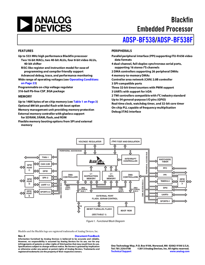 ADSP-BF538 Blackfin Processors for Industrial and Peripheral Intensive Applications
