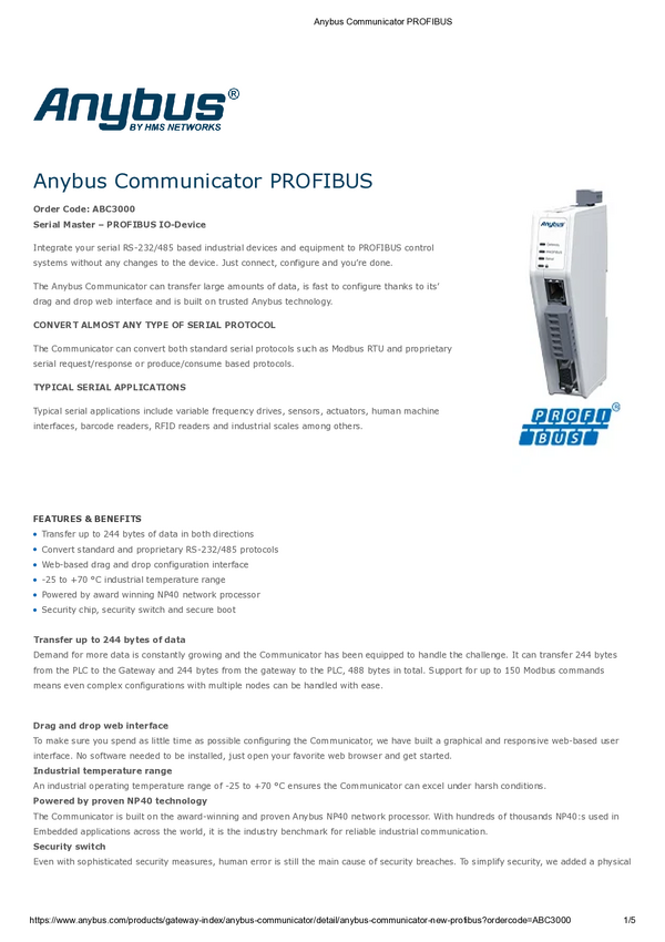 ABC3000 Konwerter szeregowy Anybus ABC3000 Profibus, RS-485, RS-232