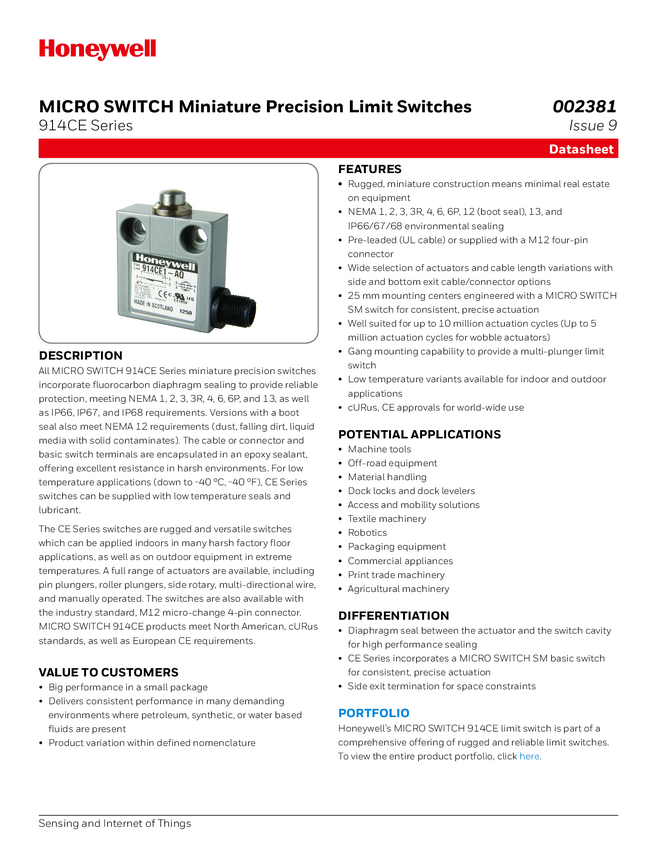 914CE18-3A Honeywell SPS 914CE18-3A Wyłącznik krańcowy, 1 szt.