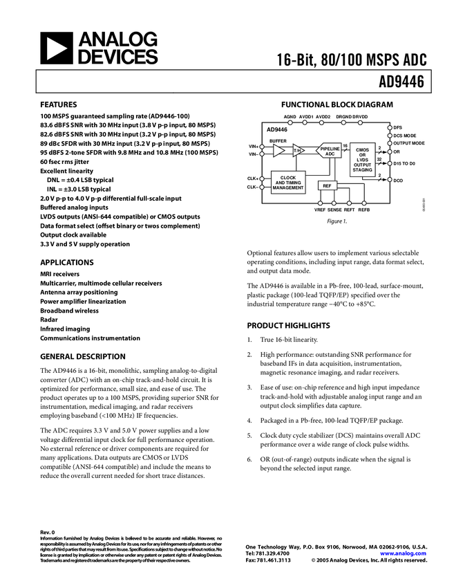 AD9446 16-Bit, 80 MSPS / 100 MSPS A/D Converter