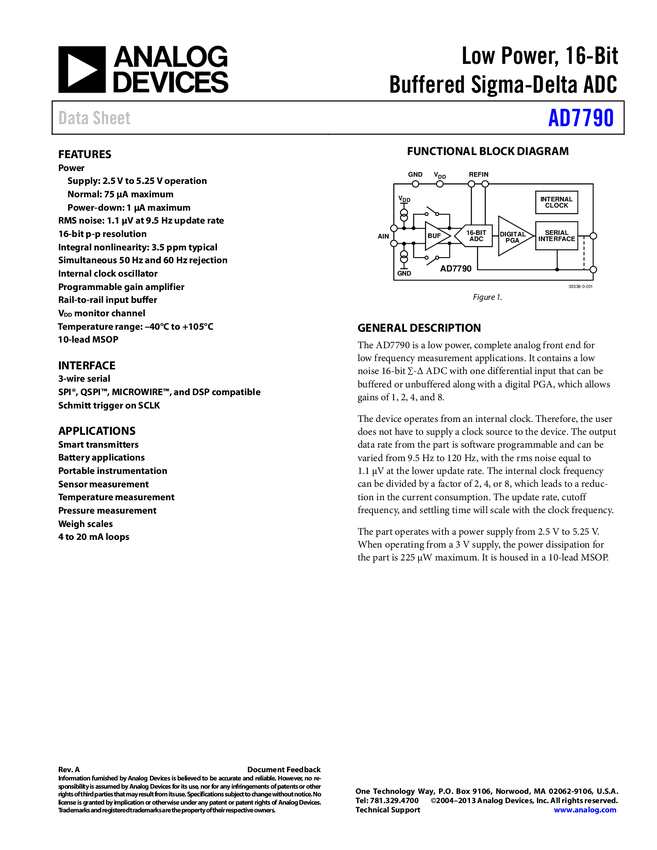 AD7790 16-Bit, Single-Channel, Ultra Low Power, Sigma Delta A/D Converter