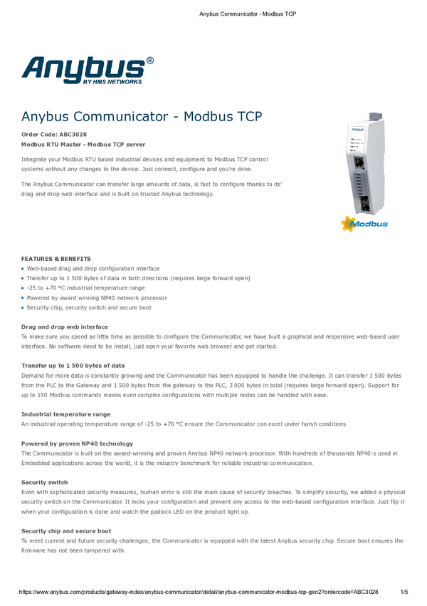 Konwerter szeregowy Anybus ABC3028 RS-485, RS-232, Modbus-RTU