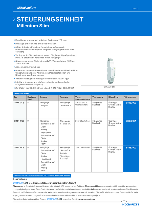 88983902 Moduł sterujący PLC Crouzet Millenium Slim Logic 88983902 24 V/DC