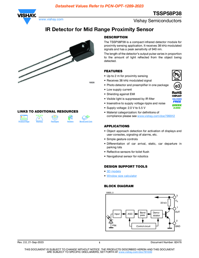 TSSP58P38 IR Detector for Mid Range Proximity Sensor