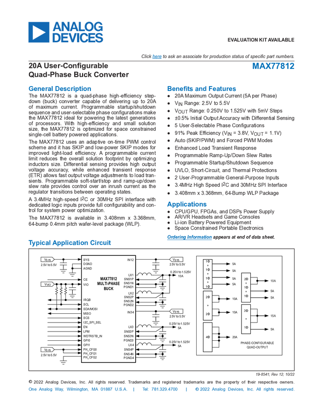 MAX77812 20A User-Configurable Quad-Phase Buck Converter