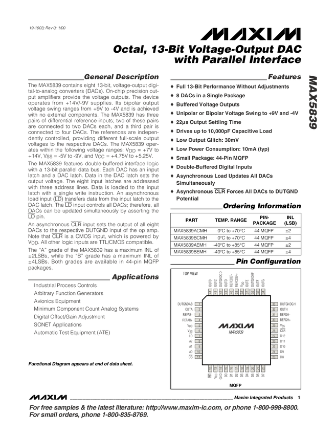 MAX5839A Octal, 13-Bit Voltage-Output DAC with Parallel Interface