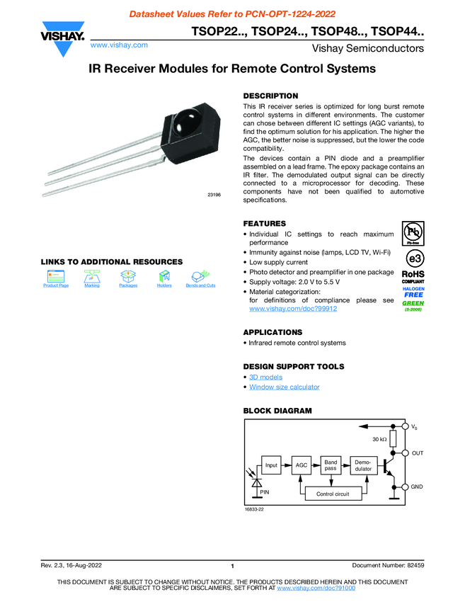 TSOP24.. IR Receiver Modules for Remote Control Systems