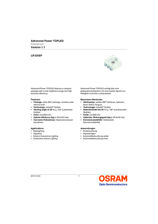 LR-G6SP-CBEA-1-1 Dioda LED; LR G9SP-CBEA-1-1; SMD; 3528; PLCC6; czerwony; 1,9-2,5V; 3,55-9cd...