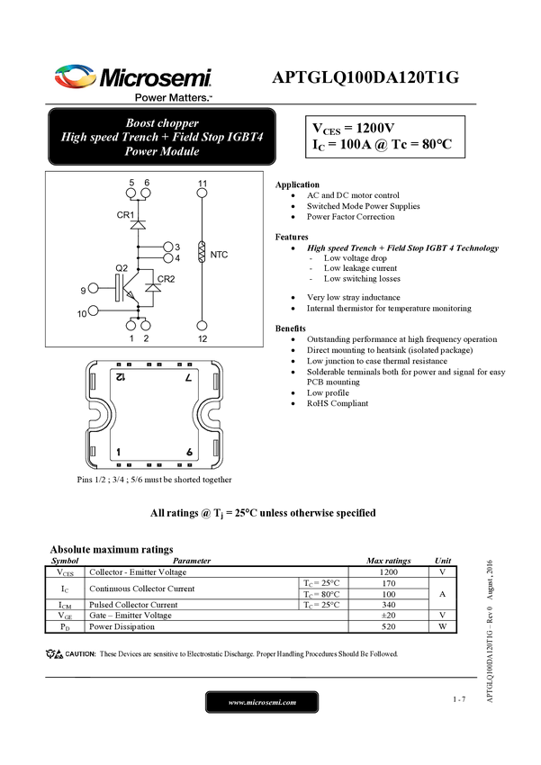 APTGLQ100DA120T1G-Module APTGLQ100DA120T1G Datasheet