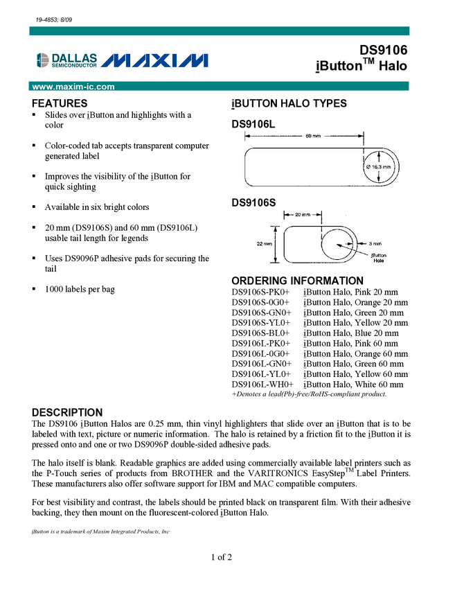 DS9106S-OG, DS9106L-PK, DS9106S-WH, DS9106L, DS9106L-WH, DS9106S-PK, DS9106S-YL, DS9106S-GN, DS9106L-OG, DS9106S, DS9106L-GN, DS9106L-BL