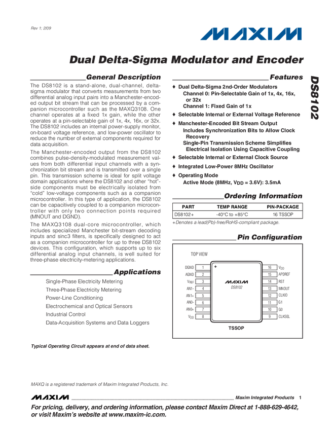 DS8102 Dual Delta-Sigma Modulator and Encoder