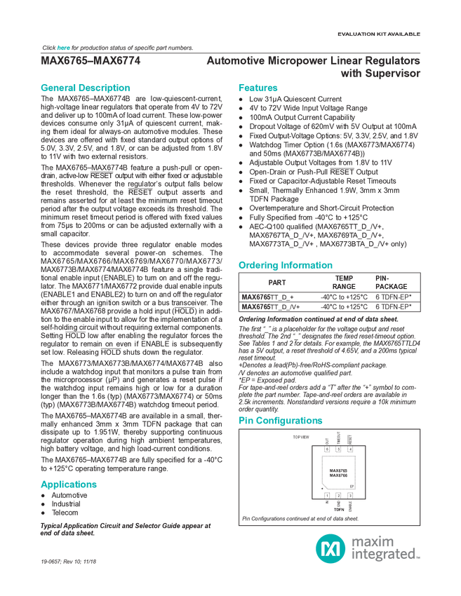 MAX6770, MAX6771, MAX6768, MAX6767, MAX6766, MAX6772, MAX6769, MAX6774, MAX6765