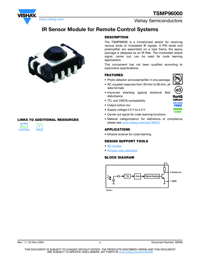 TSMP96000 IR Sensor Module for Remote Control Systems