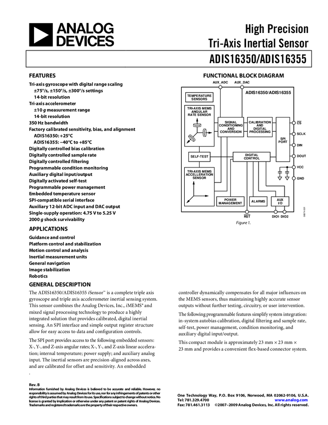 ADIS16350 High-Precision Tri-Axis Inertial Sensor