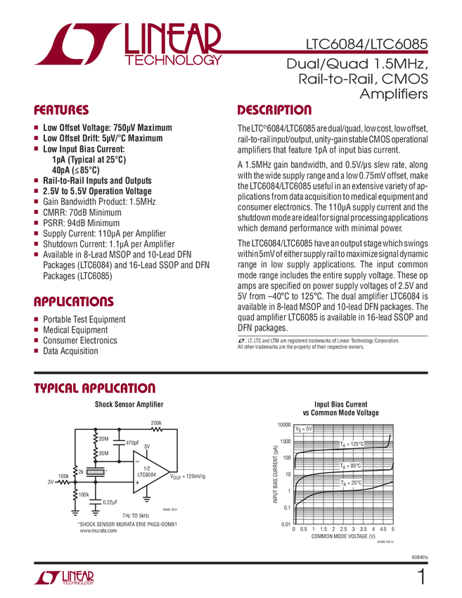 LTC6084 Quad 1.5MHz, Rail-to-Rail, CMOS Amplifiers
