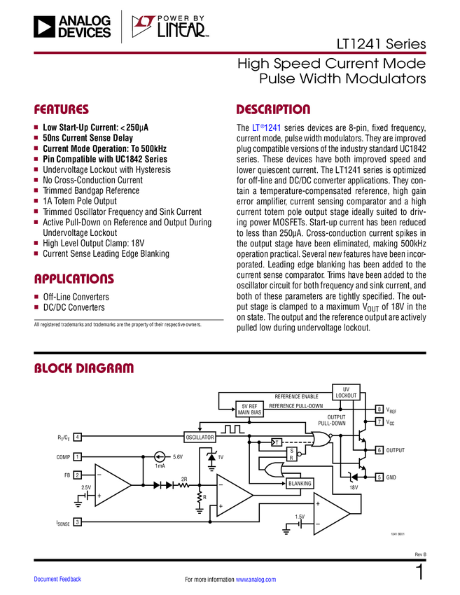 LT1241 High Speed Current Mode Pulse Width Modulators