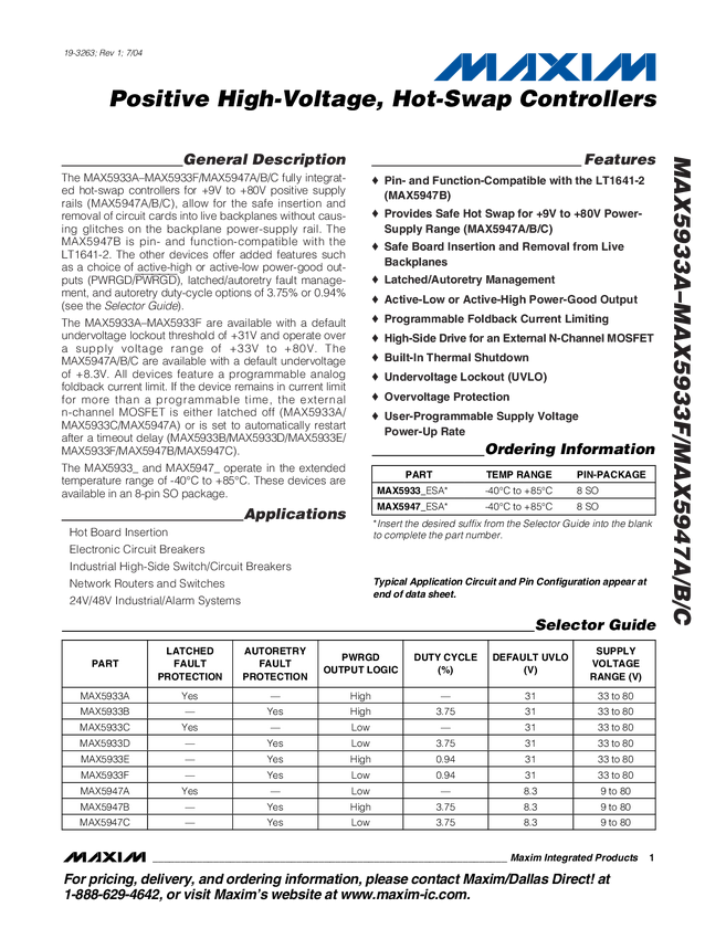 MAX5933E, MAX5933A, MAX5947A, MAX5933D, MAX5947B, MAX5933B, MAX5933, MAX5933C, MAX5947C, MAX5933F