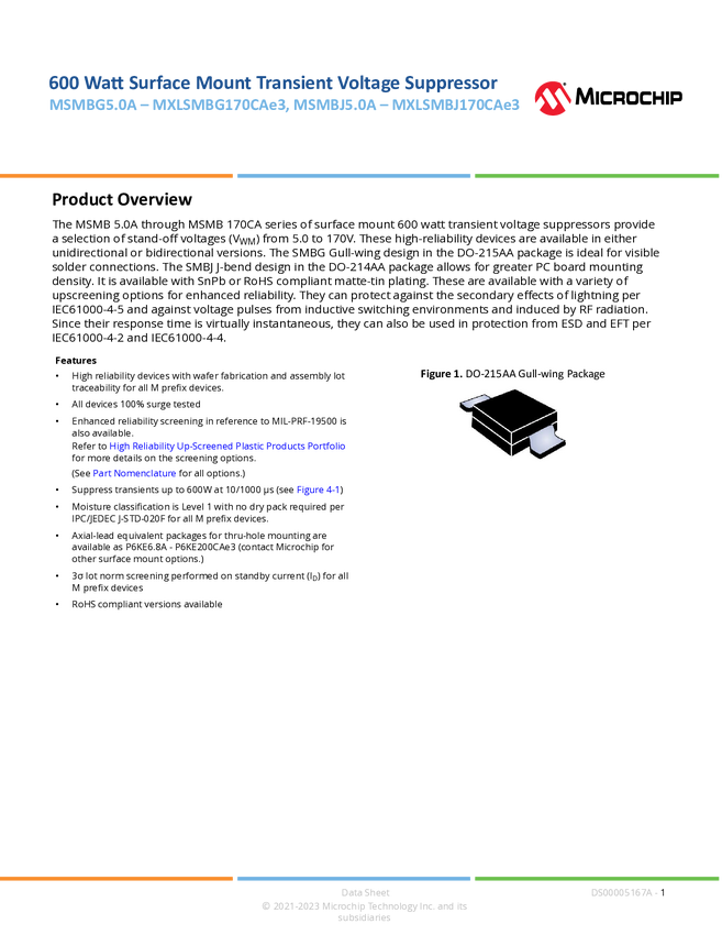 MSMBG5.0A – MXLSMBG170CAe3, MSMBJ5.0A – MXLSMBJ170CAe3