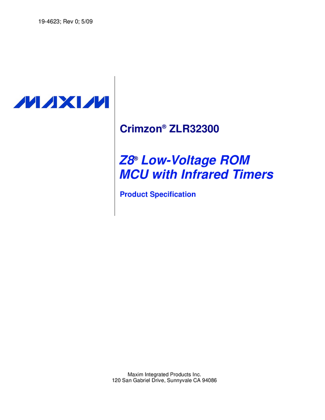 ZLR32300 20-/28-/48-Pin Low-Voltage ROM MCU with Infrared Timers