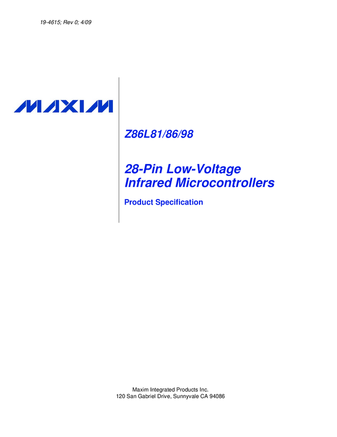 Z86L81 28-Pin Low-Voltage Infrared Microcontrollers
