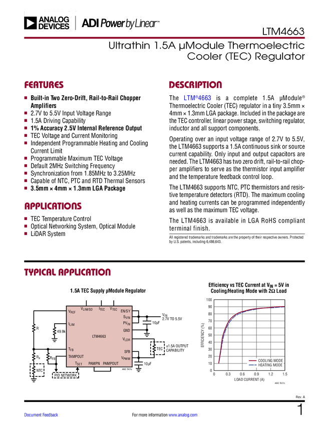 LTM4663 Ultrathin 1.5A µModule Thermoelectric Cooler (TEC) Regulator